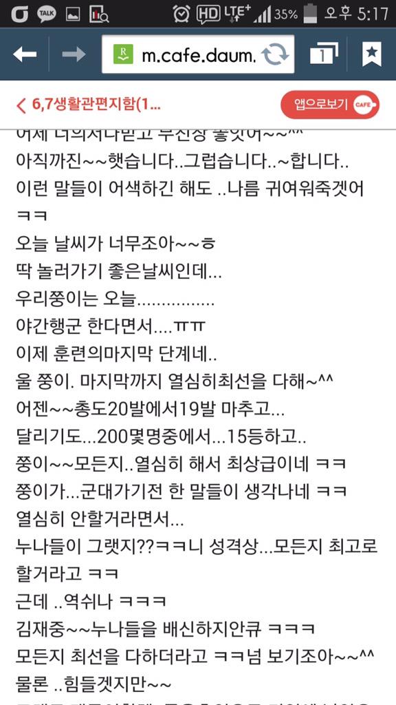 [TRANS] 2015.04.30. "hogy Kim Jaejoong vicces" említette egy másik újonc katona családtagjának válaszolva